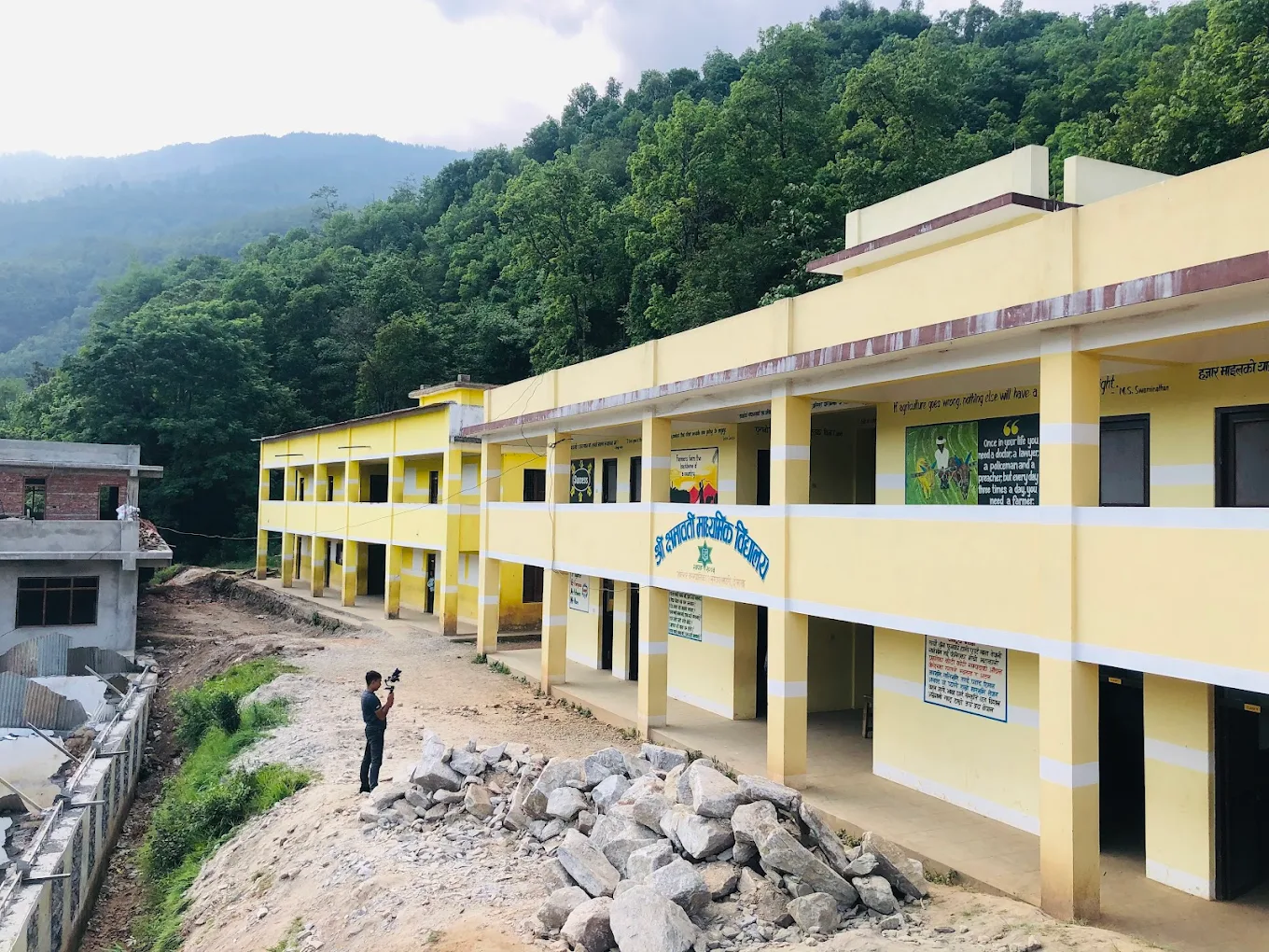 Rebuilt safer classrooms and labs after the 2015 mega-earthquake through collective effort. सामूहिक प्रयासबाट २०१५ को महाभूकम्पपछि सुरक्षित कक्षा कोठा र प्रयोगशाला पुनर्निर्माण।